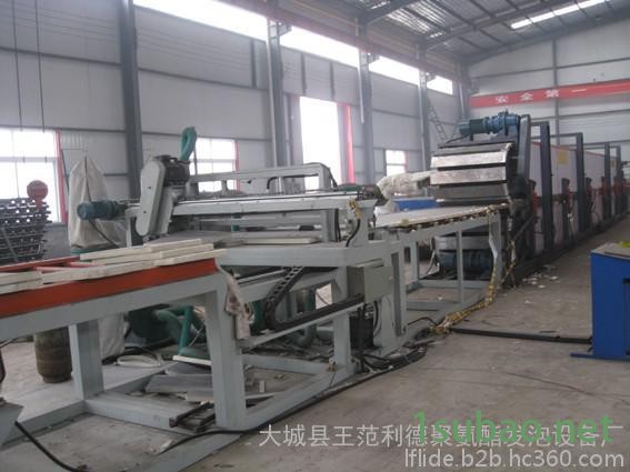??該生產(chǎn)線由聚氨酯黑白料及發(fā)泡劑預(yù)混裝置一套、放料裝置二套、預(yù)加熱裝置一套、PF發(fā)泡機(jī)一臺(tái)、移動(dòng)澆注機(jī)一臺(tái)、貼側(cè)紙裝置一套、層壓機(jī)一臺(tái)、熱風(fēng)循環(huán)裝置一套、修邊機(jī)一臺(tái)、自動(dòng)跟蹤切斷機(jī)一臺(tái)、輥架等組成。