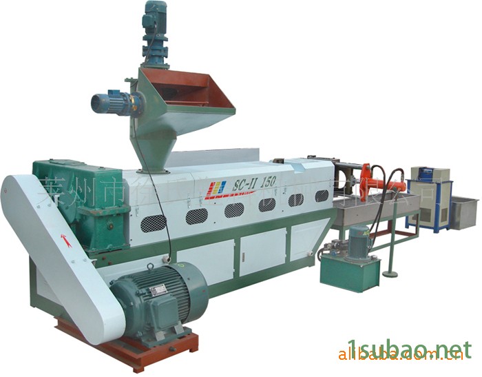 該型號塑料造粒機是我廠自行研發的第七代廢舊塑料造粒機組全套機組包括:履帶式輸送機、自動入料機、擠出機、真空磁管加熱圈(或加熱)煤爐自動換網液壓機頭、不銹鋼冷卻槽調速切粒機。