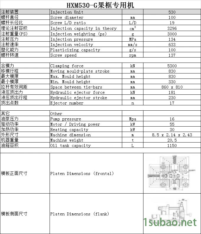 | 開(kāi)模行程: | 830mm | 重量: | 20.5t |