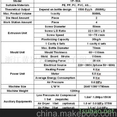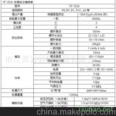YF-50A 吹瓶機主要參數 | |||